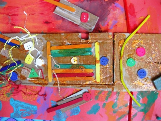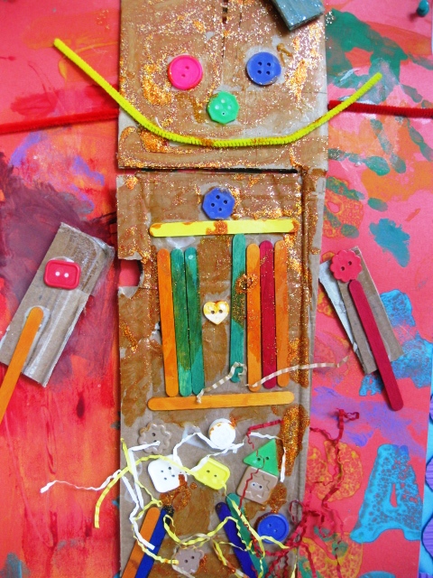 I thought I would share these gorgeous robots my grade twos created using recycled cardboard and junky stuff they collected from home. I saw this idea on one of the many fabulous art blogs I check out but I can’t remember at this moment which blog it was. As soon as I do I will add it to this post.