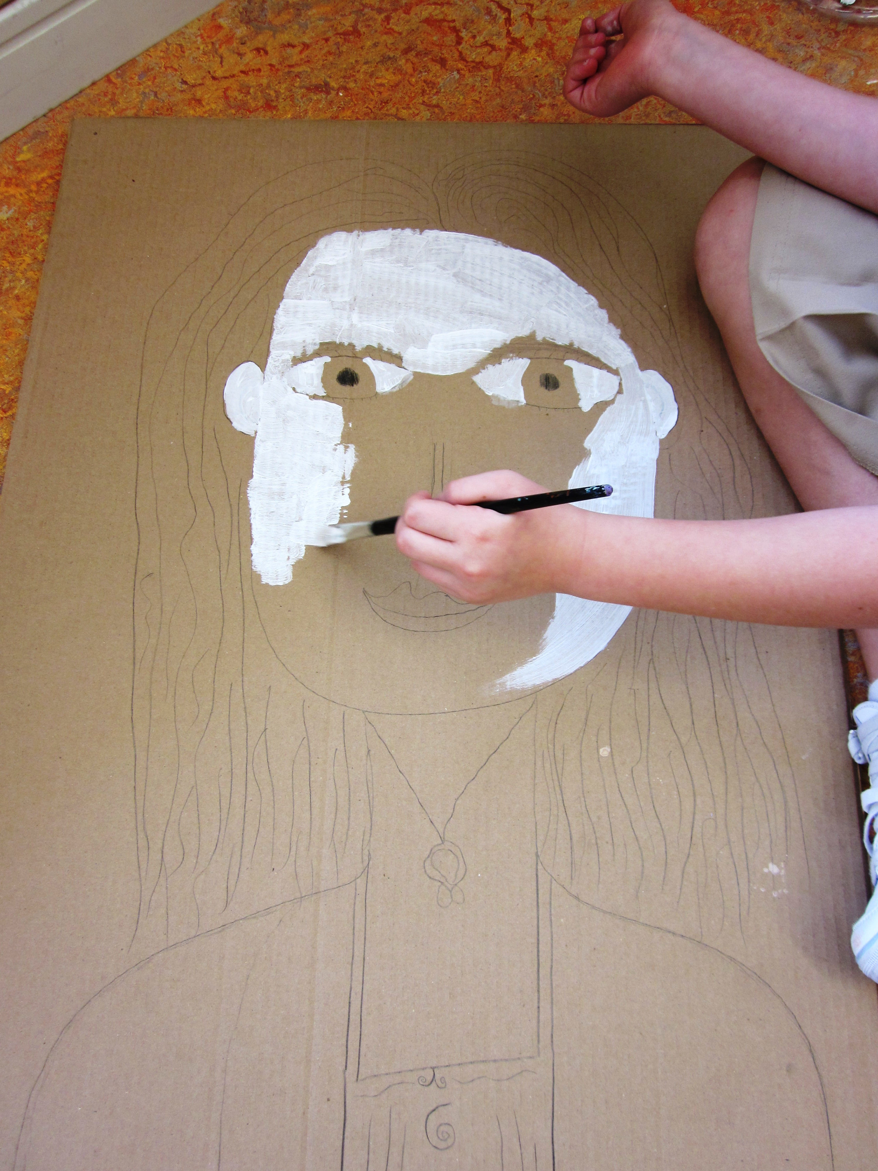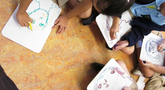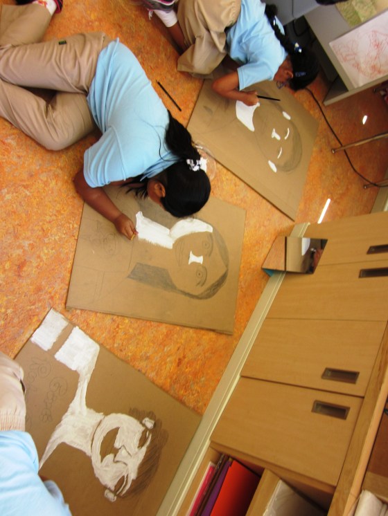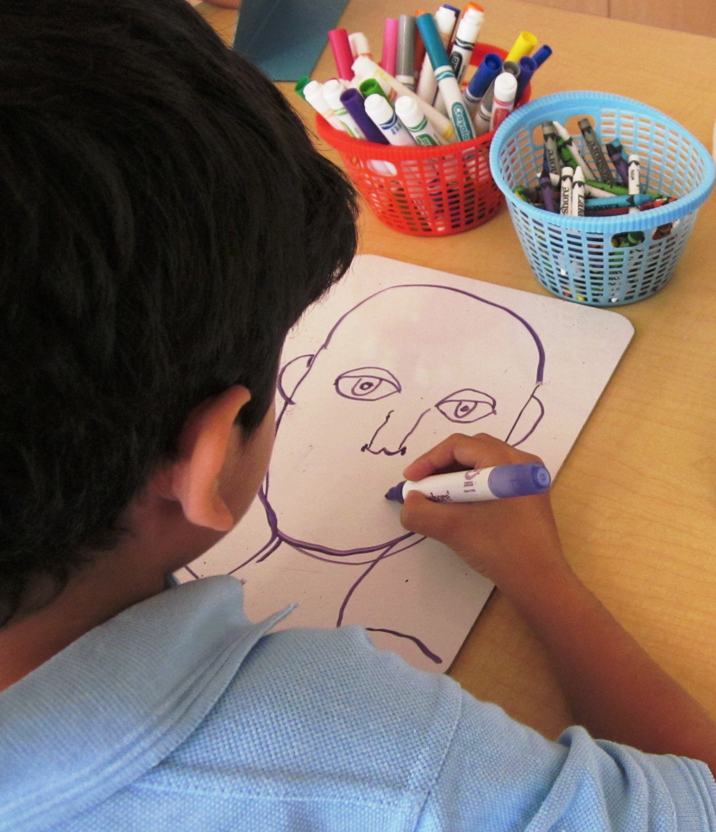 So what kind of projects are happening in Ms. Ale’s class these days? Everything from giant cardboard self-portraits , white board practice portraits, portraits of a friend, Chuck close inspired self-portraits and much more. Stop by later this month to see the finished projects. So far, the kids are having a blast and I am loving teaching them!