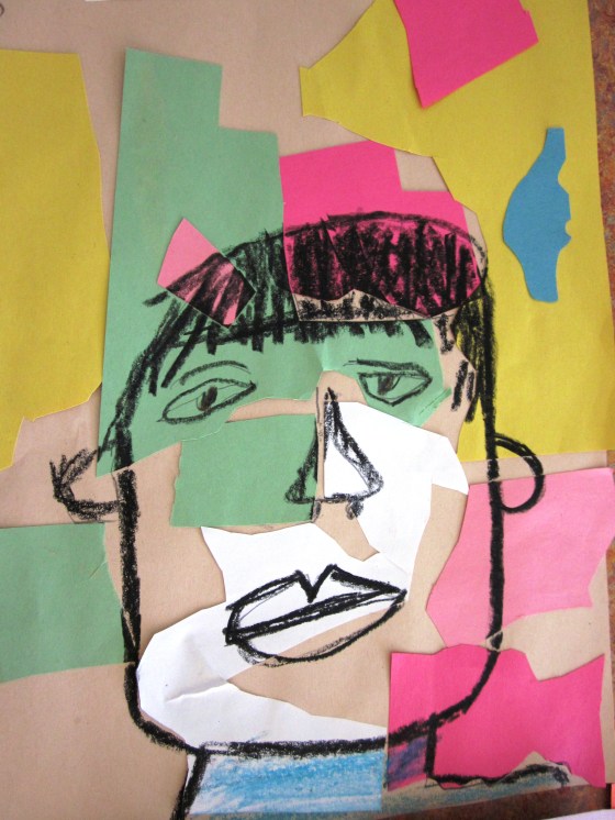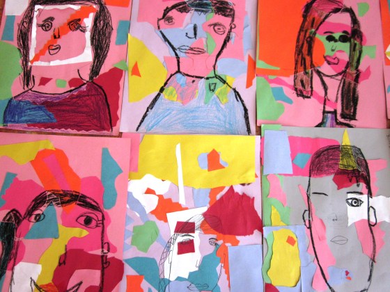 What happens when you combine paper cutting Matisse style with cool grade one self-portraits ?  An opportunity show off some creativity and have lots of fun! I saw this lesson over at Incredibleart.org and thought I would give it a go with my grade one crew.  We looked at many of Henri Matisse’s art work especially the collages he made later on in life. Matisse’s art was such a big hit with the kids and they loved the vibrant colors and shapes he used. This is a great time to introduce the terms organic and geometric shapes.