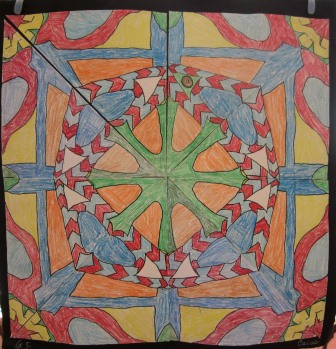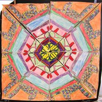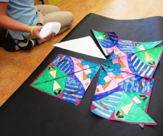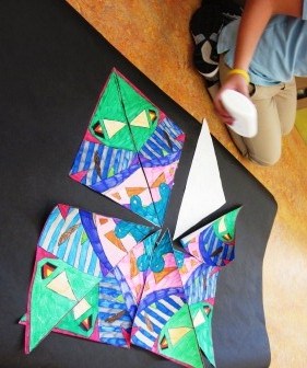 Once the triangle is colored you have the option of color copying the original 7 more times or have your kids trace the the original 7 times and then hand coloring each one. Remember that each triangle has to be colored in the same as the original. We chose to hand copy and color each section and yes, my students were a little tired by the end but when we put everything together, it was like magic! They were so happy and pleased and all agreed the hard work was so very worth it.