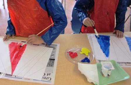 Explain to your students that they should paint two sections red, two blue and two yellow in different sections and not next to each other. Example: two blues can’t be together. I also suggest that everyone begin with yellow because not everyone washes their brush completely and you want to keep the yellow as yellow as possible.