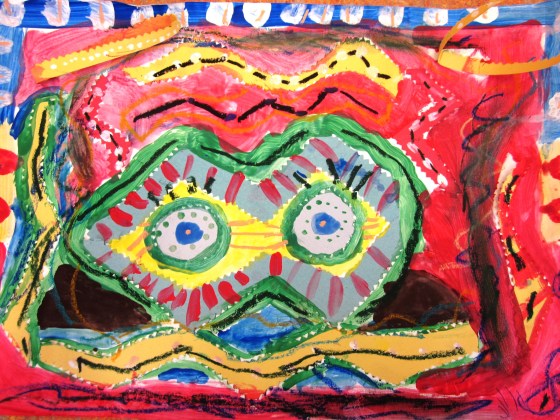 I challenged the grade three students to choose a secret sound and to think how they could show this sound using colors, shapes and paint.