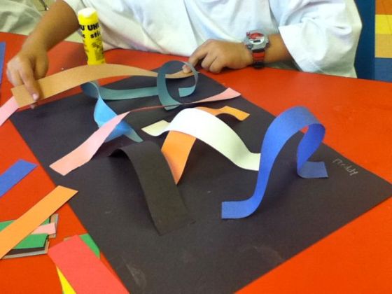 UPDATE NOTE: Let me define ‘my own thing’ : The abstract art was done in their notebooks, Kinder had no notebooks and grade 3’s were given a choice as to work in their notebooks or do the lesson we did below– I don’t want to give the false impression that I totally changed the lessons. I just creatively made them more interesting 🙂