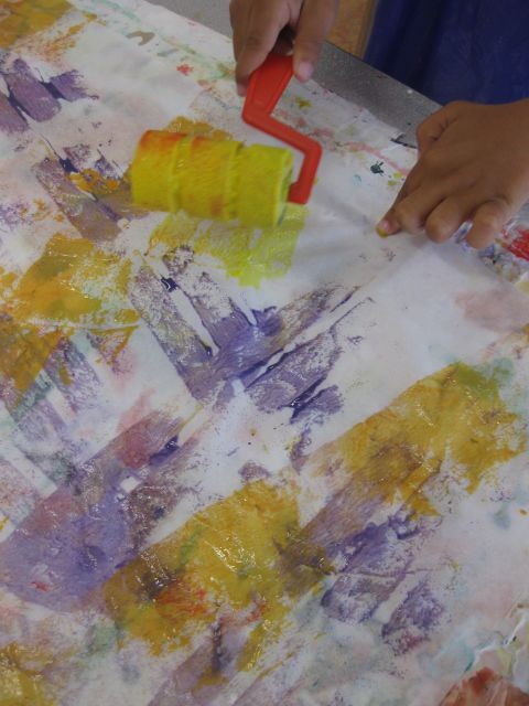 Pre-Kinder love to read and learn about Eric Carle– who doesn’t? I adore him! So while they were reading and writing to the author, we were painting tissue paper in the famous style of Eric Carle and making collaged insects on large paper. The kids then made a classroom book using the pictures we did in art. See more on this lesson here. Do you see how much fun this can be?