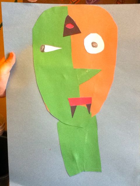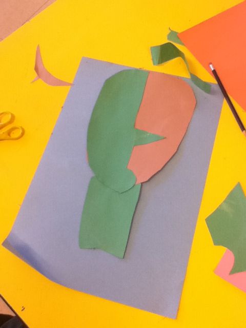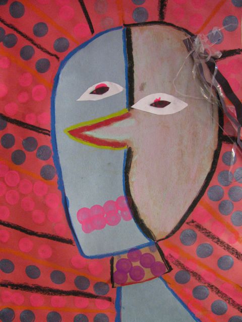 Then go ahead and explain that everyone will make their own Picasso inspired face using colored construction paper and paint for the final details.