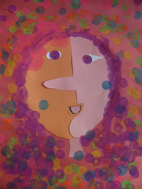The background looks really nice with some painted lines, dots, zig-zags or anything else your students can come up with. I adore oil pastels so I would even add some designs over the dry paint, necklaces, etc..
