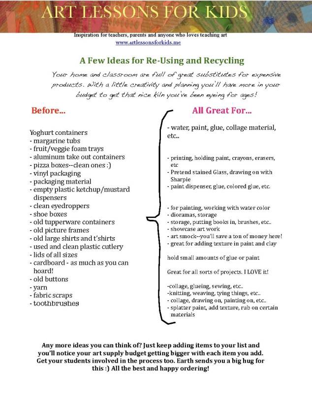 2. Now before you run off to get your art catalogs, remember this tip I always follow as my next step in this process and it begins with this question: What items can I collect from home or around the classroom that can be used as a substitute for some items from the art catalogs?