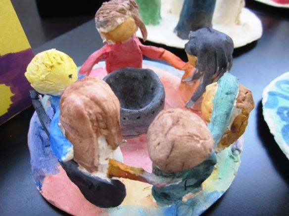 Anyway, in social studies, the grade 7 class was learning about symbols and the importance of family and clans so I decided to help out by having my students create their own clans with 5-7 members in a circle. Many cultures have done this with clay and I thought it would be a great way for the students to learn this and create their own. Since we hadn’t done much with clay at this point, the timing was perfect.