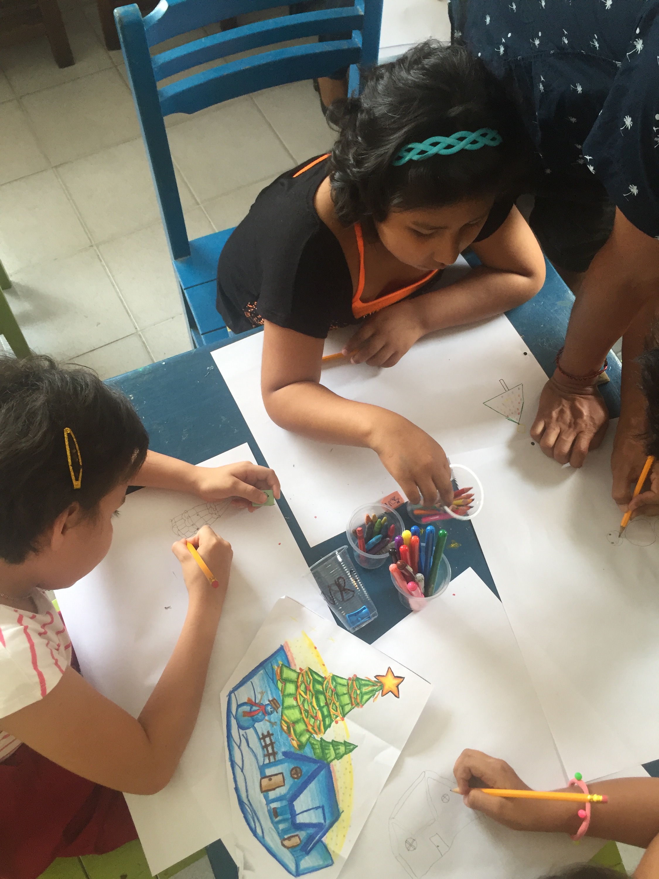 I like to volunteer for a local charity called Gotita Roja Bolivia that supports children with cancer. Today I went to teach a class of kids ranging from 3-15 so they could prepare a picture all about Christmas as part of a contest for the cover of the charity’s Christmas cards they want to sell.