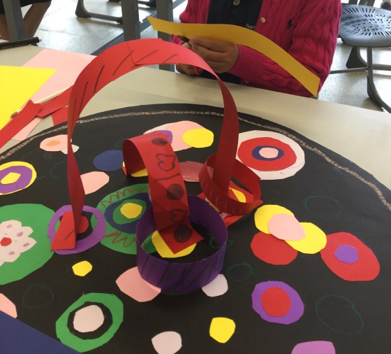 Finally, the students added strips of paper that were folded and twirled to create roller coasters all coming out of the dots.
