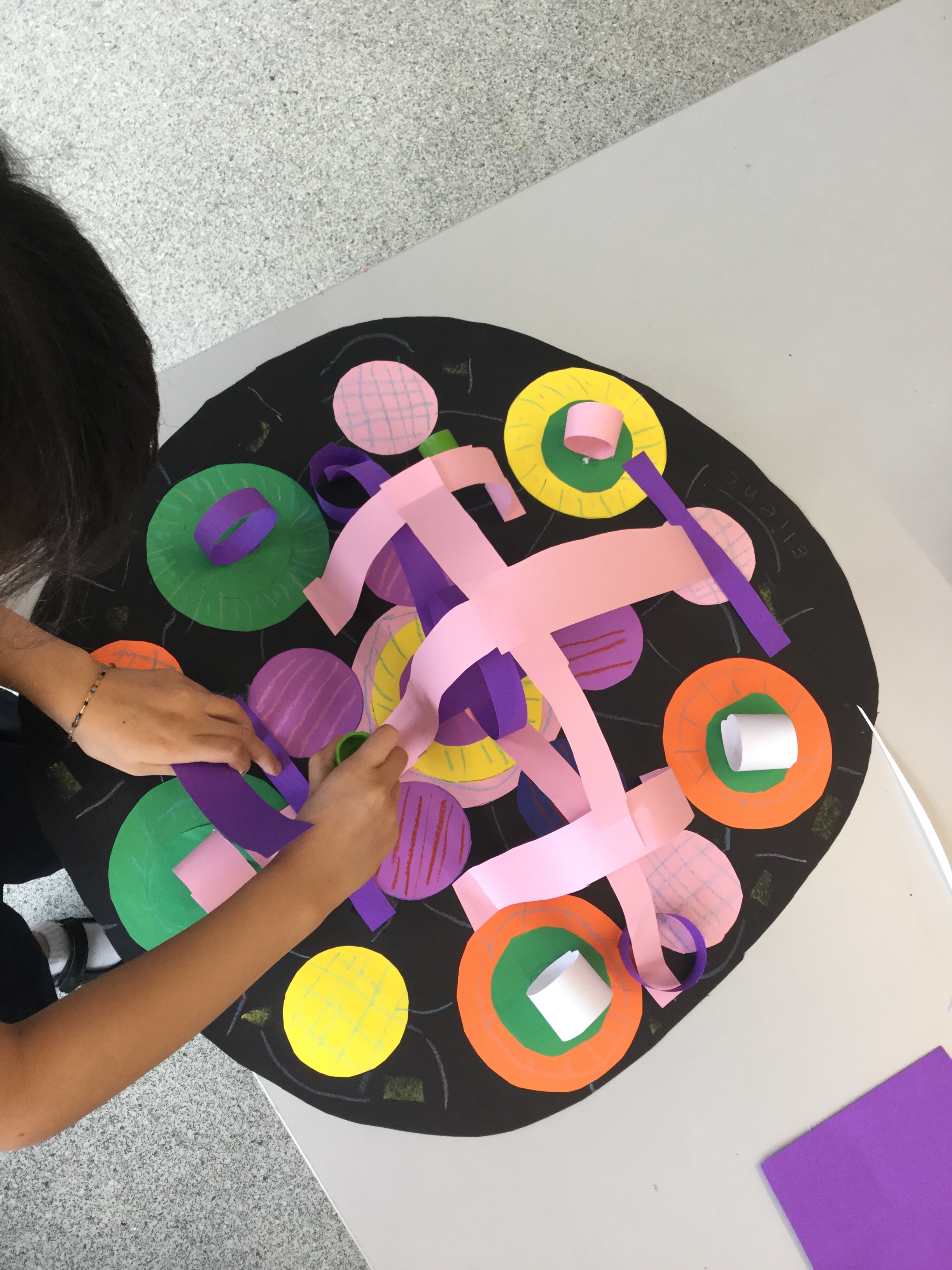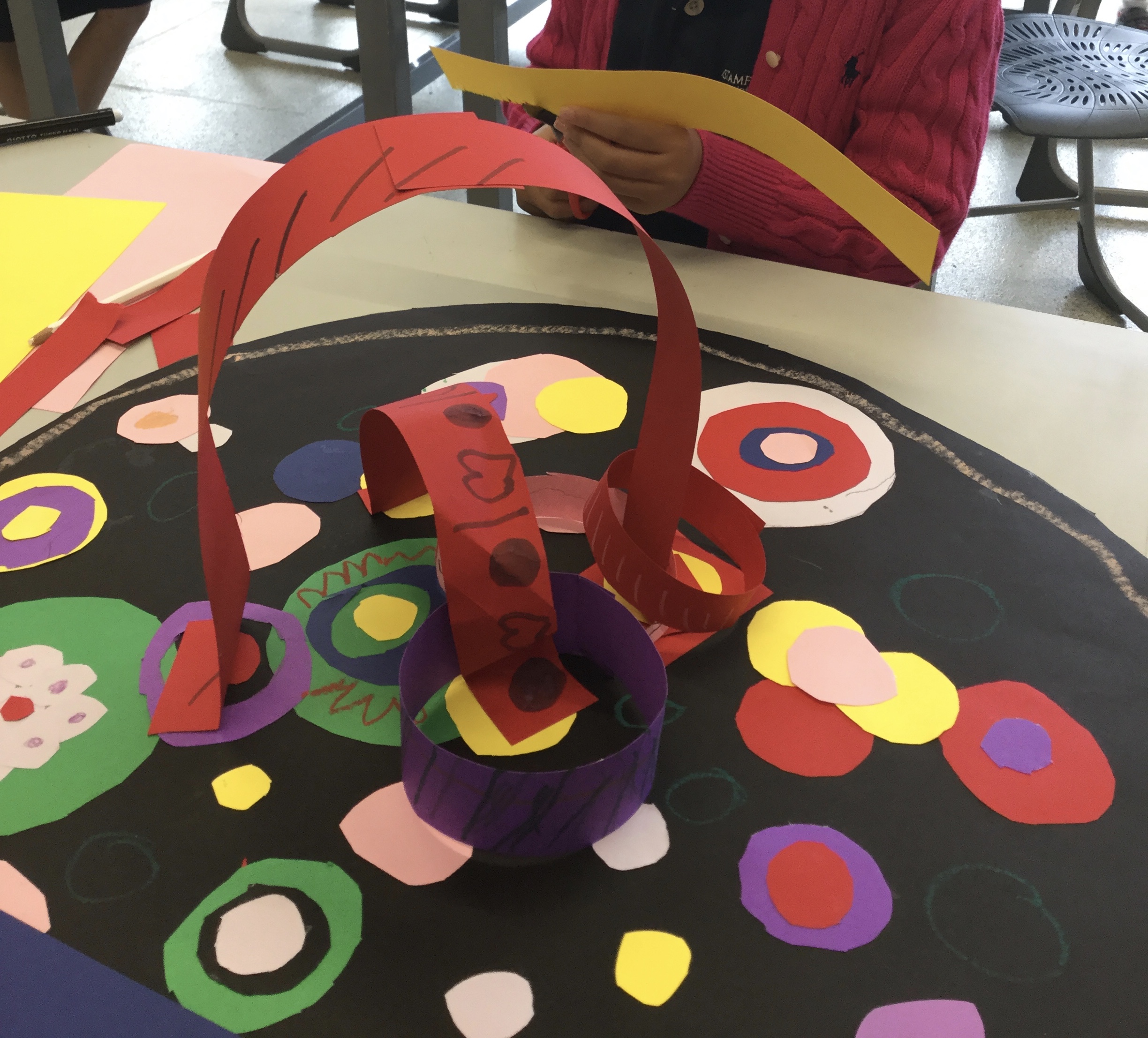 Finally, the students added strips of paper that were folded and twirled to create roller coasters all coming out of the dots.