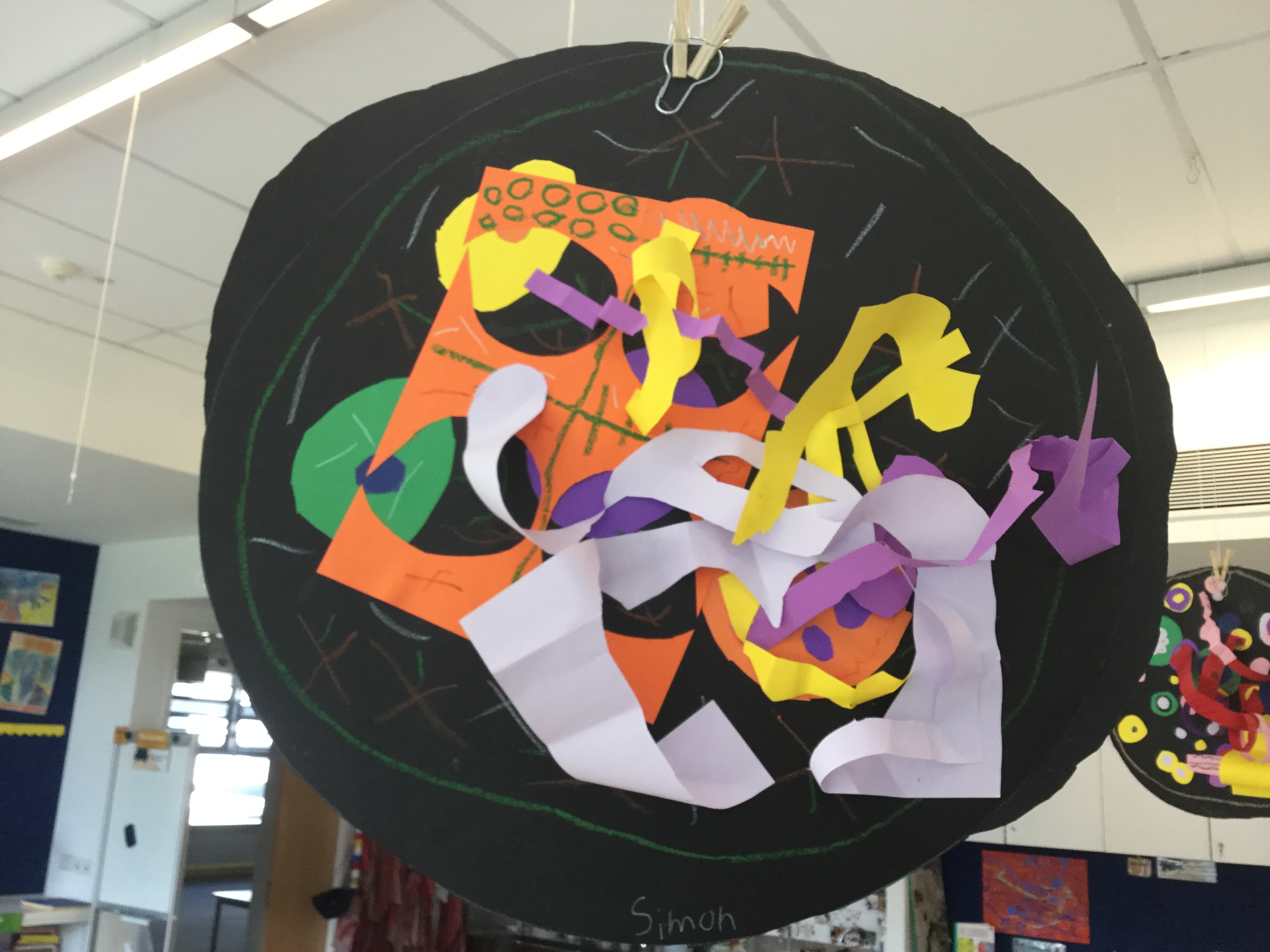 For these, we started with a large black dot out of construction paper. The students cut out more dots to glue on the black paper.