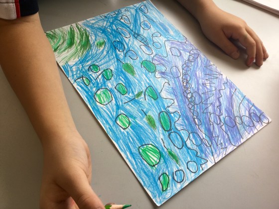 After reviewing what they already knew from their UOI discussions, the students went ahead and created their own environment for their animal using lines, shape, pattern, and color. This is a great opportunity to review and incorporate these elements of art.