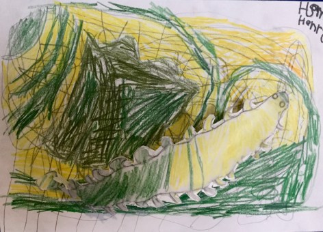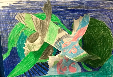 Once colored, the students glued their animal to the original drawing paper and with a little bit of bending and gluing, their camouflaged animal and background was complete.