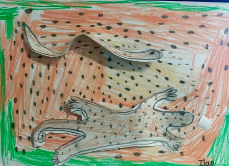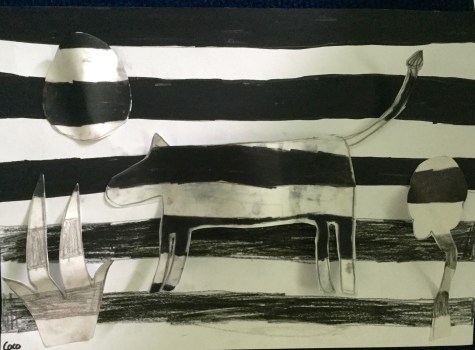 The animal was cut out from the tracing paper and then placed over their background to match the colors. This is HOW you hide, blend, and camouflage an animal in art class!