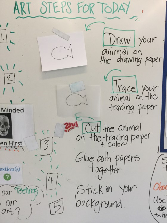 Grade 2 students were doing a UOI on adaptation which I thought connects perfectly to art because there are so many ways you can integrate and support the classroom learning.