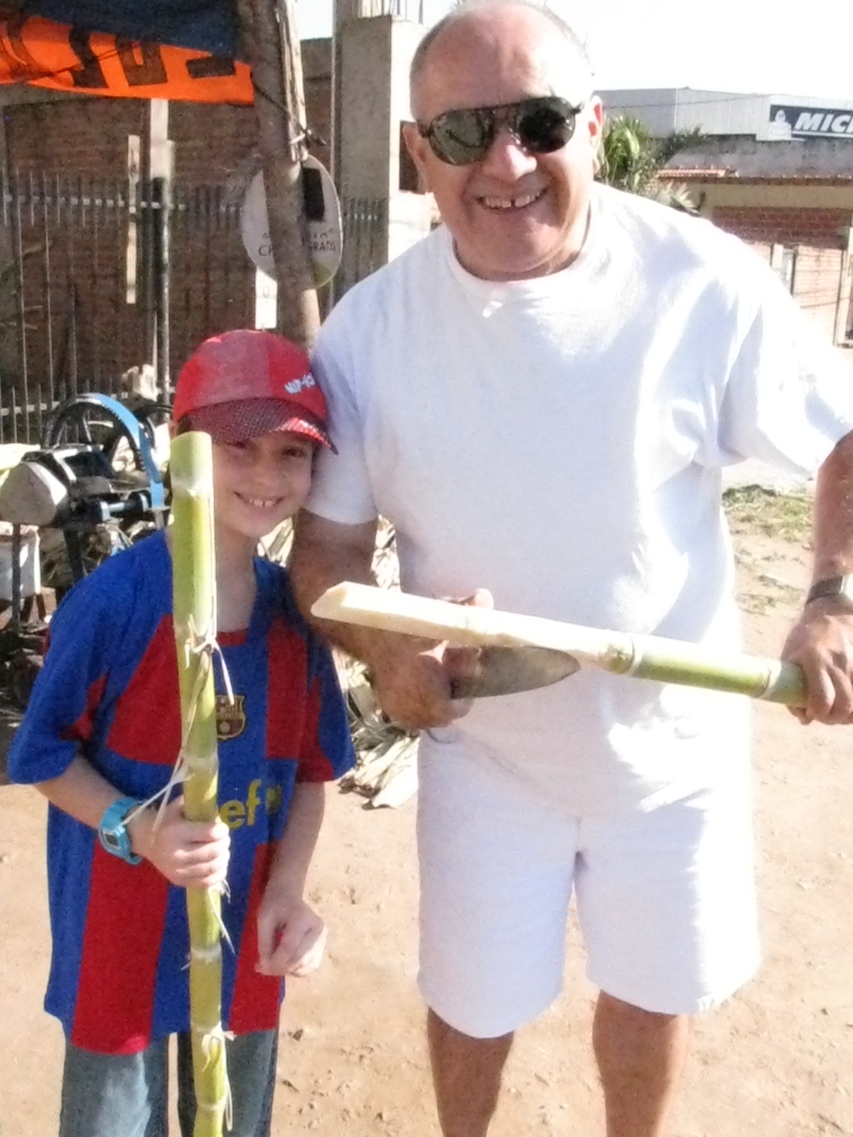 Dad cutting up sugar cane-yum!