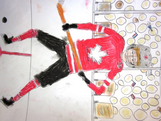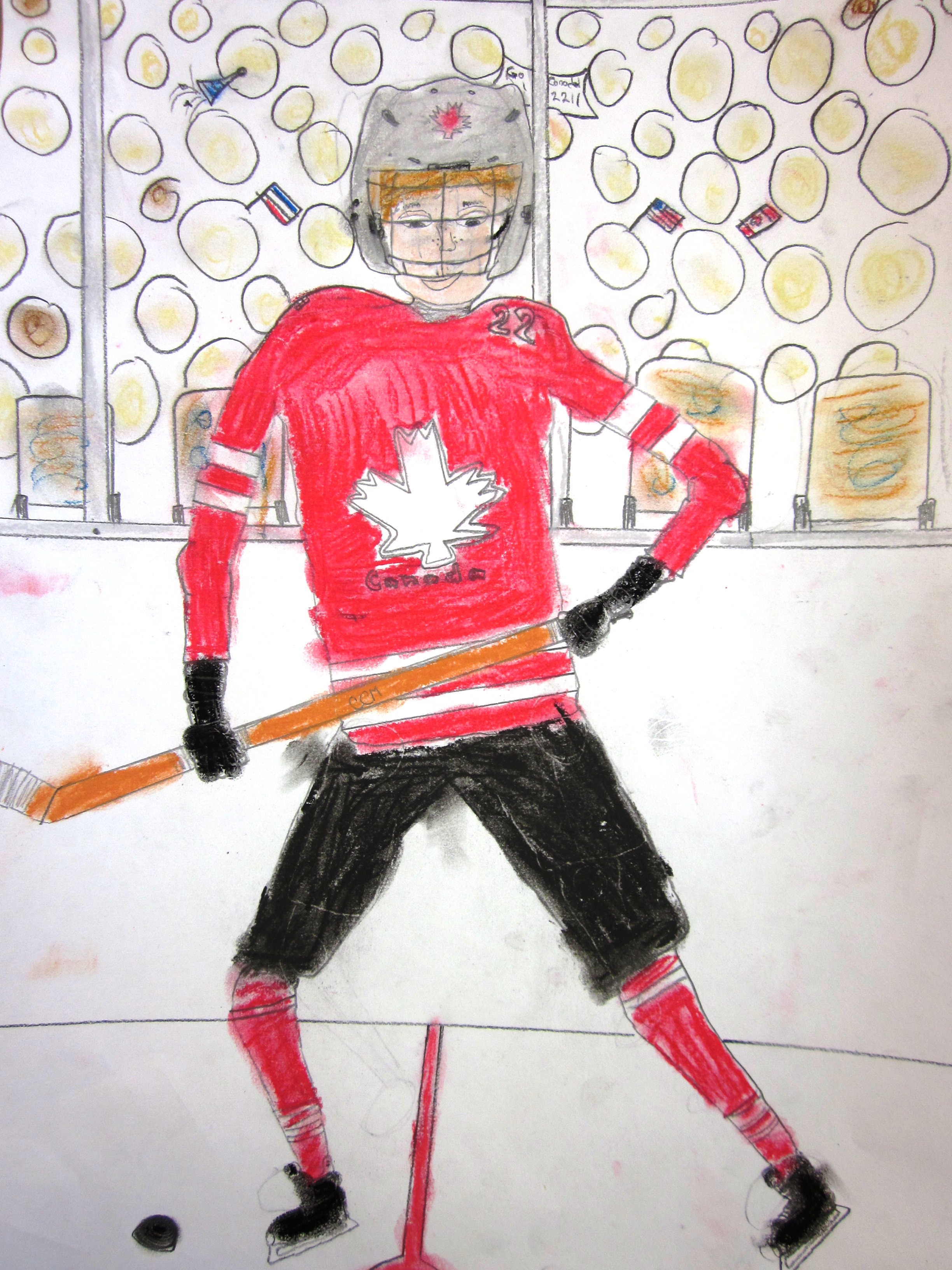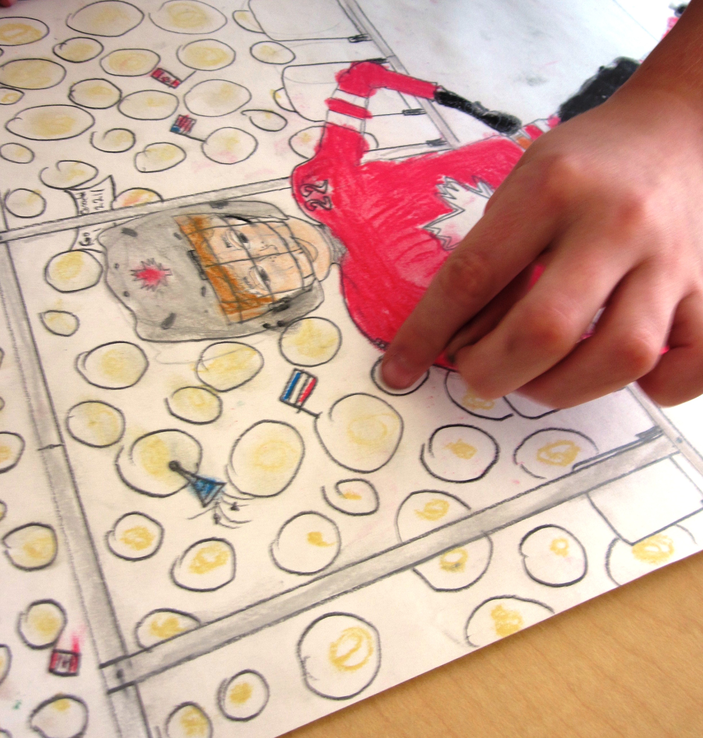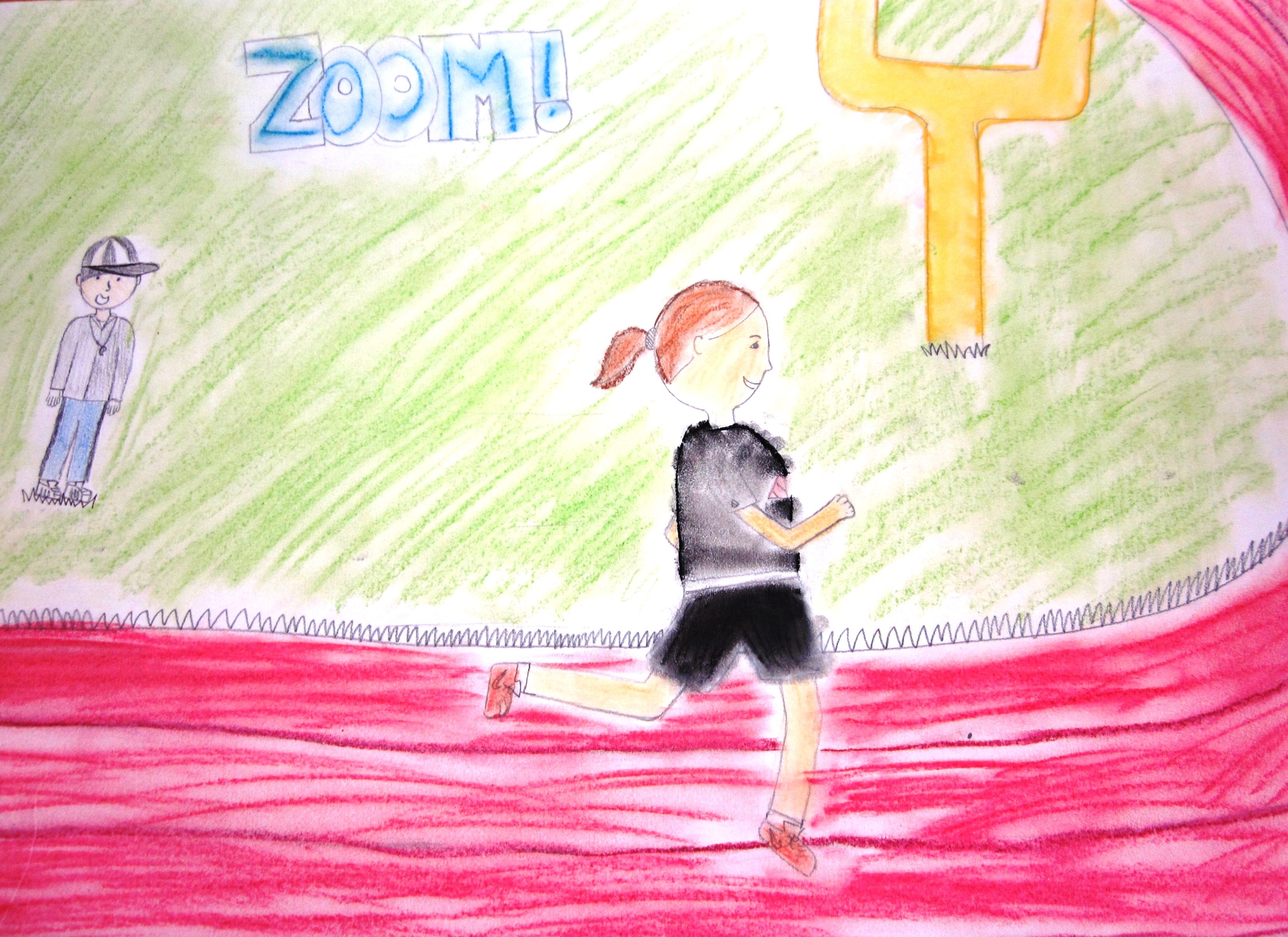 We looked at some of his paintings and discussed them for a while before brainstorming movements that each student could do that was ‘healthy‘ for the body–see the connection to the PE theme? 🙂 Karate, tennis, soccer, etc were the ideas and everyone was sent off to their seats with a 12×18 piece of paper, pencil and eraser.