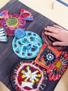 Finally when everything was glued and dry they painted they work. Make sure the students paint two layers and are careful to paint around the pieces. Some experimented with splattering paint and the effect was great.