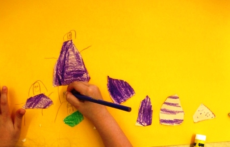 They ‘planned’ their ideas and placed pieces all around and ‘layered’ other pieces. They don’t need to make a picture but to just to have fun arranging the cardboard pieces to make an ‘abstract’ work of art. Of course some ended up making a picture which was Ok too.
