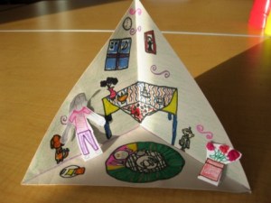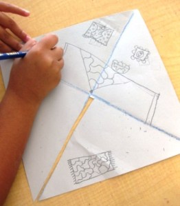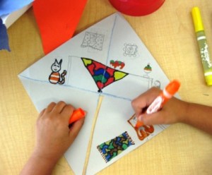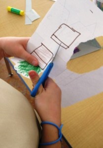 The final step was to draw the lizards on thicker paper such as bulletin board paper. Once the lizards were drawn, they had to be colored in to mimic part of the object they drew previously so their lizard would camouflage. The lizards were cut out, bent along the middle and the feet folded so they would ‘stand’ on their object after being glued.
