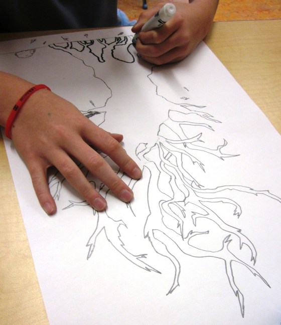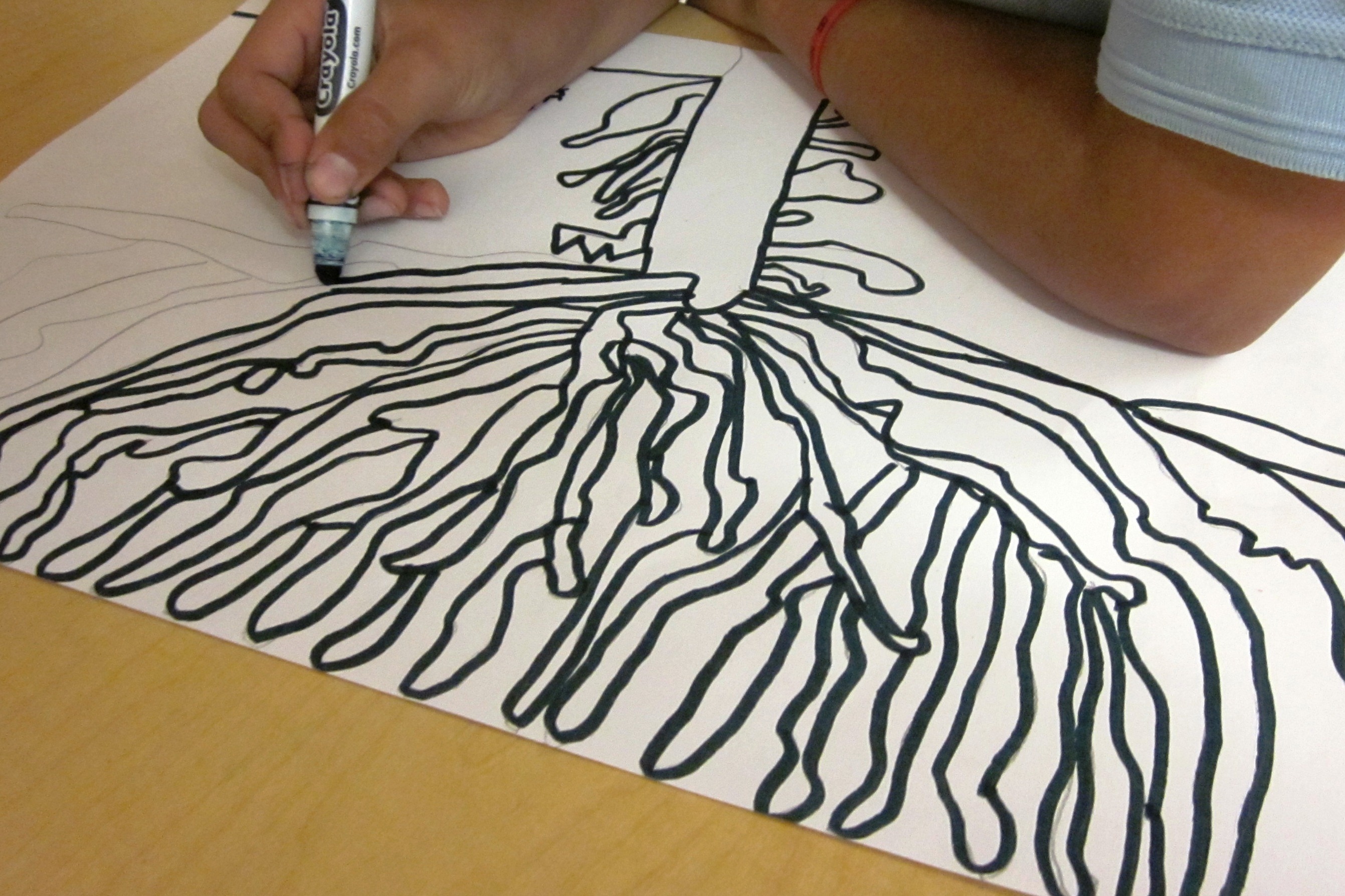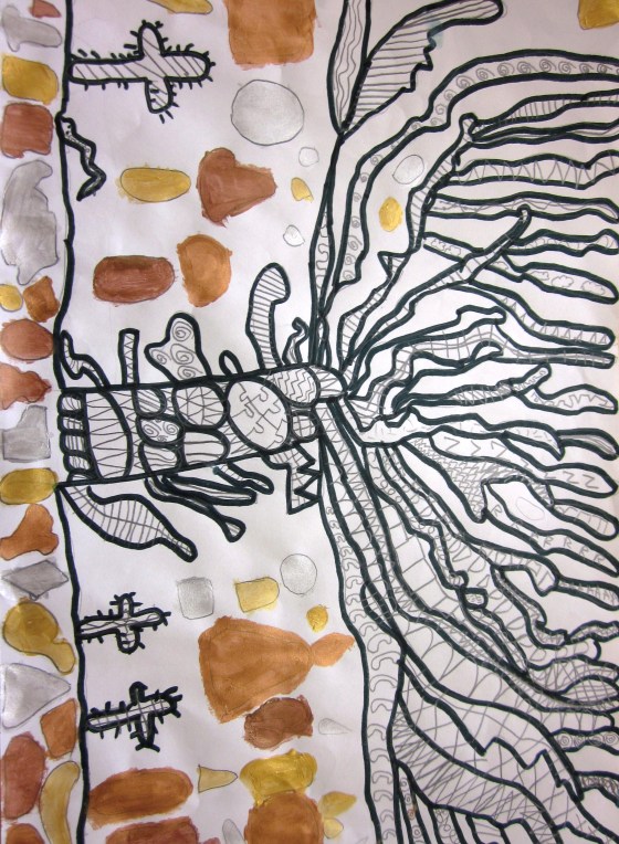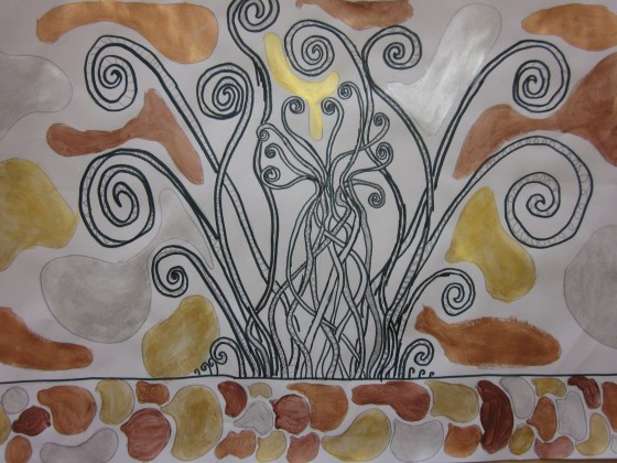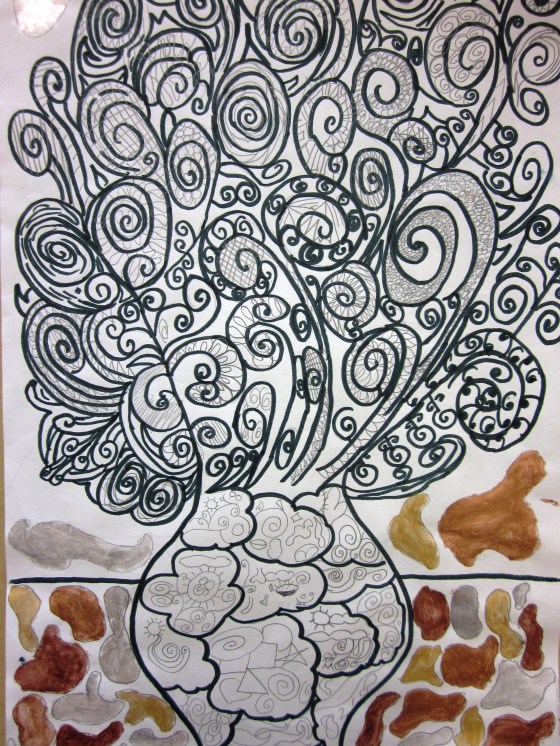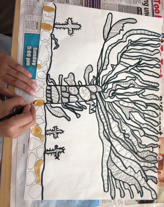 Everyone got 12×18 paper and designed their own interpretation and vision of the tree of life. My only requirement was that the tree should fill up most of the paper space, the tree trunk could be any shape but relatively thick and there could be no visible leaves, just branches. This encouraged the students to be creative with the way they drew the branches and how they spread them out on the paper.