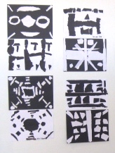 Once the teams were happy with their lines the next step was to glue them down on the paper. They then were given the same colored paper and had to make the same or another design using the opposite color. If the students started with tearing white paper on black then they would do tearing black lines on white paper.