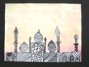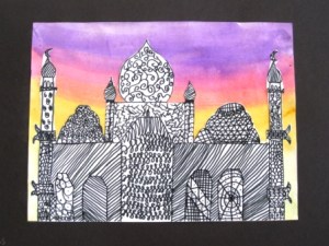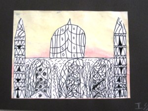 Once everything was dry, the students outlined all the lines with black sharpies. This is a great lesson you can do with older kids too.