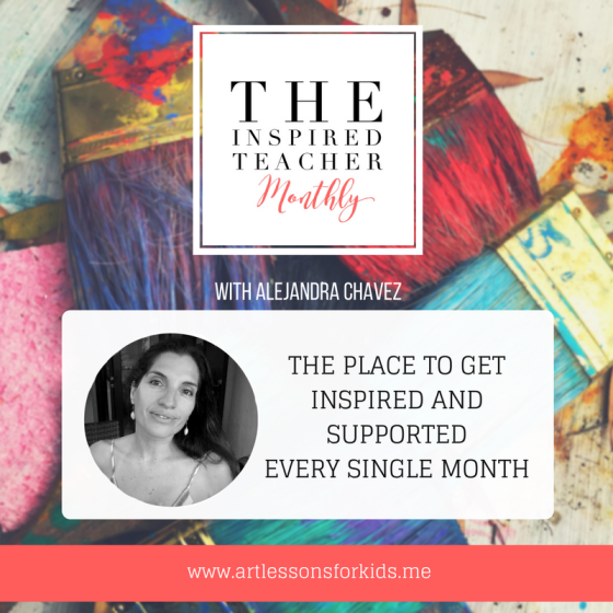 The Inspired Teacher Monthly is a membership subscription platform that offers fresh, new, inspirational content mixed with some of my greatest lessons, tips, and curated art lessons from around the web I use and adapt for my lessons! Each month I share exclusive content including everything I’m exploring in real time in the classroom and more. You’ll get weekly encouragement from me plus a monthly, members-only topic focused recording to make it easy and fun to stay consistent with your artsy fartsy teaching practice and feel motivated and inspired!